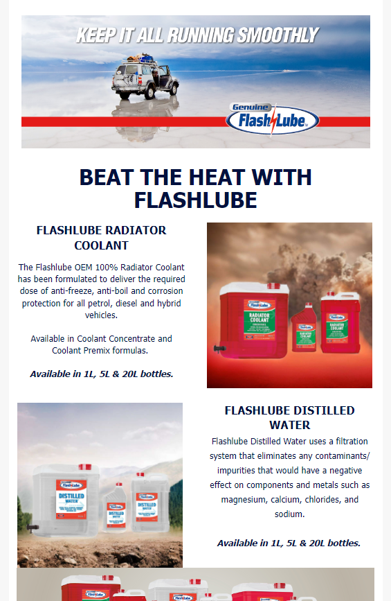 Flashlube Coolant and Distilled Water in AAAA April Edition